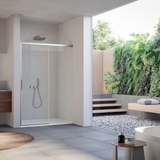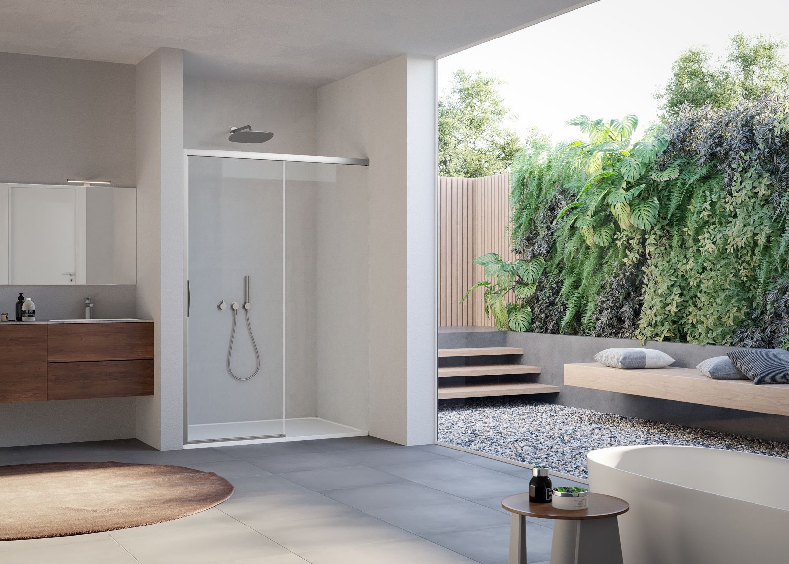 Nonostante la leggerezza visiva, la funzionalità rimane il pilastro del progetto. Le soluzioni senza telaio beneficiano di tecnologie avanzate come il sistema di sganciamento delle porte scorrevoli, che facilita la pulizia del vetro in totale sicurezza. La manutenzione è ulteriormente semplificata dai profili lineari anche all’interno e dalla maniglia montata su un sottile supporto in alluminio. Il comfort d’uso è garantito da rotelle di scorrimento regolabili e dal sistema integrato ACS (Automatic Close & Stop), che accompagna dolcemente la porta negli ultimi centimetri di apertura o chiusura.