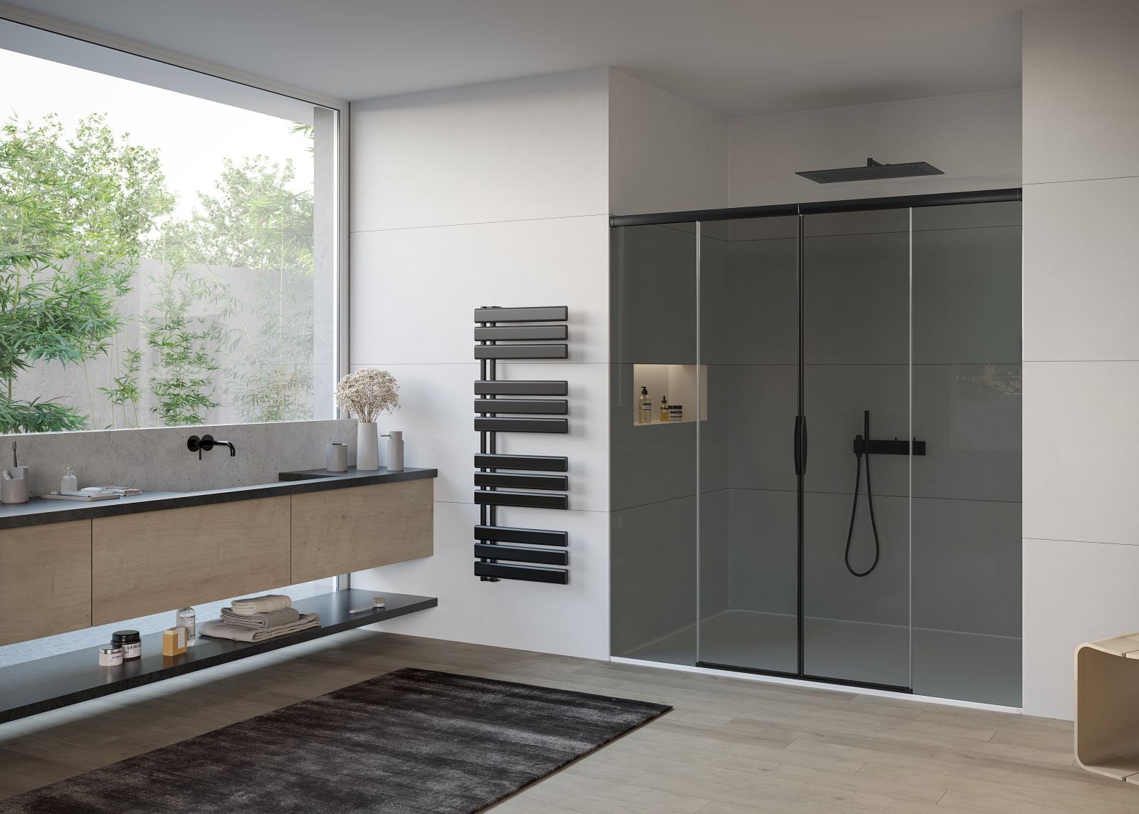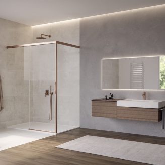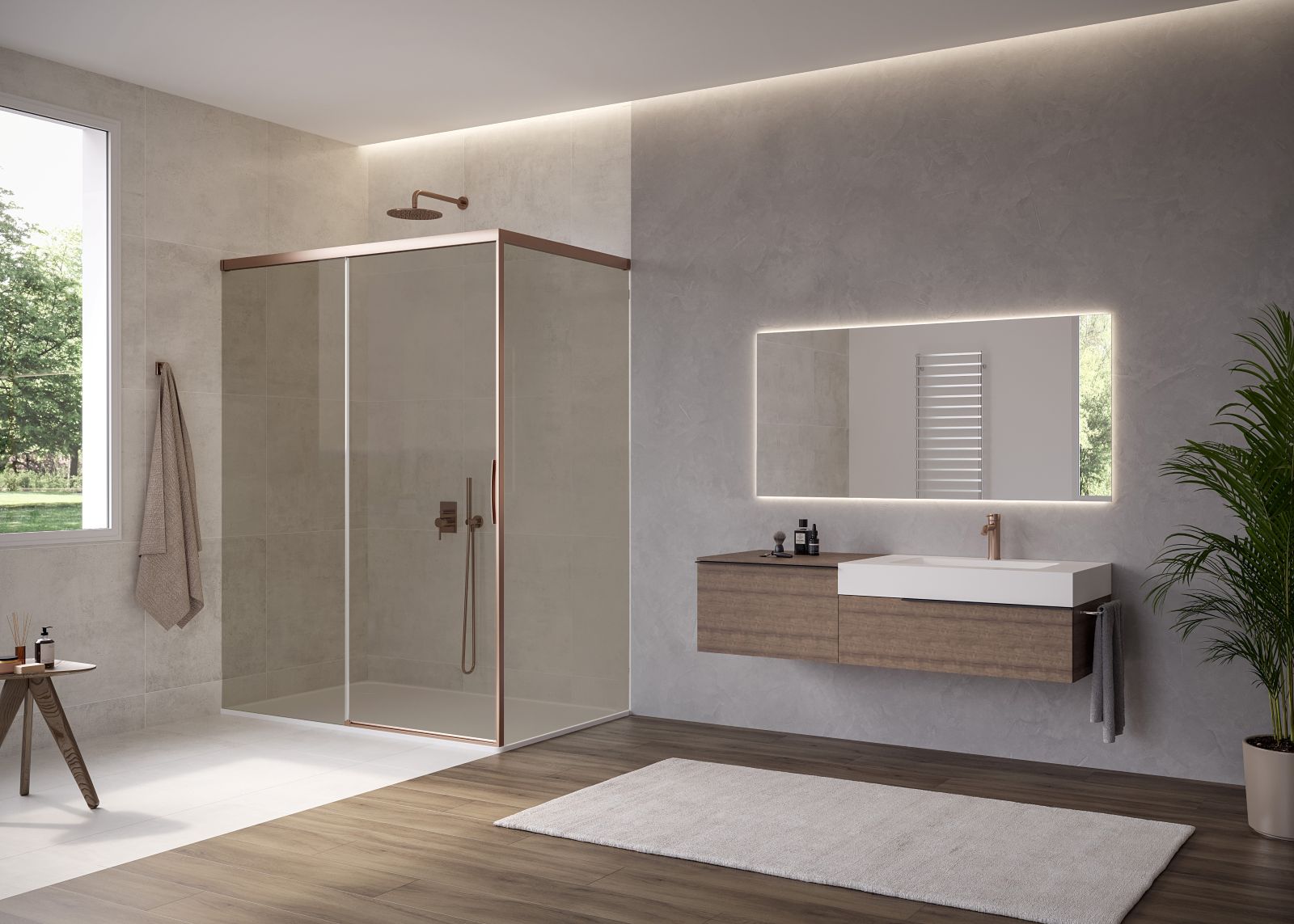 La personalizzazione è totale: i profili spaziano dall’argento opaco al black pearl, fino alle raffinate finiture copper e brass pearl. Tra le opzioni per il vetro debutta la nuova variante Bronze, mentre l’elemento laterale può essere arricchito dal pratico portasciugamani Bares, fissato con un innovativo sistema di incollaggio a raggi UV che garantisce stabilità e pulizia estetica senza precedenti. Con questo ampliamento, Duka conferma il suo impegno nel migliorare la qualità dell’abitare contemporaneo attraverso la sintesi perfetta tra tecnica e flessibilità compositiva.