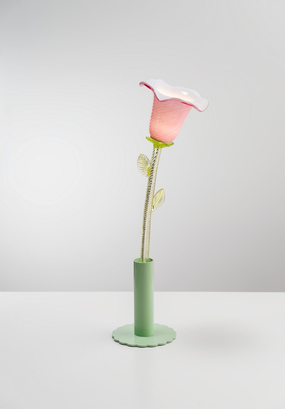 La collezione è proposta con un vaso in vetro elettrificato via cavo, disponibile in due misure: la versione più piccola è adatta per uno o due steli, mentre la più grande può accoglierne fino a cinque. Per un utilizzo esteso a tutti i contesti, è disponibile anche la versione a batteria ricaricabile wireless, nascosta nel gambo. In questa configurazione, la luce è dimmerabile e si attiva con un semplice tocco.