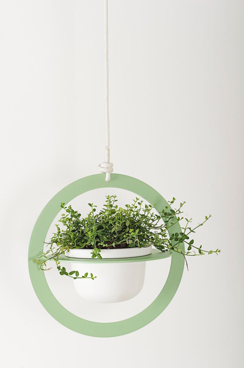 Il portavasi Saturno, disegnato da Anna Mercurio, nasce dalla ricerca della designer relativa ad un profondo studio sul tema della circonferenza e del diametro abbinato alle lezioni del maestro del Bauhaus Joseph Albers sullo studio dei piani: un oggetto apparentemente semplice, dove un cerchio metallico bidimensionale, tagliato a laser e poi piegato, dà vita ad una struttura tridimensionale in cui è posto un vaso in ceramica, mentre una solida corda nautica sostiene il portavaso, disponibile in tre grandezze differenti, e permette di poterlo fissare con facilità.