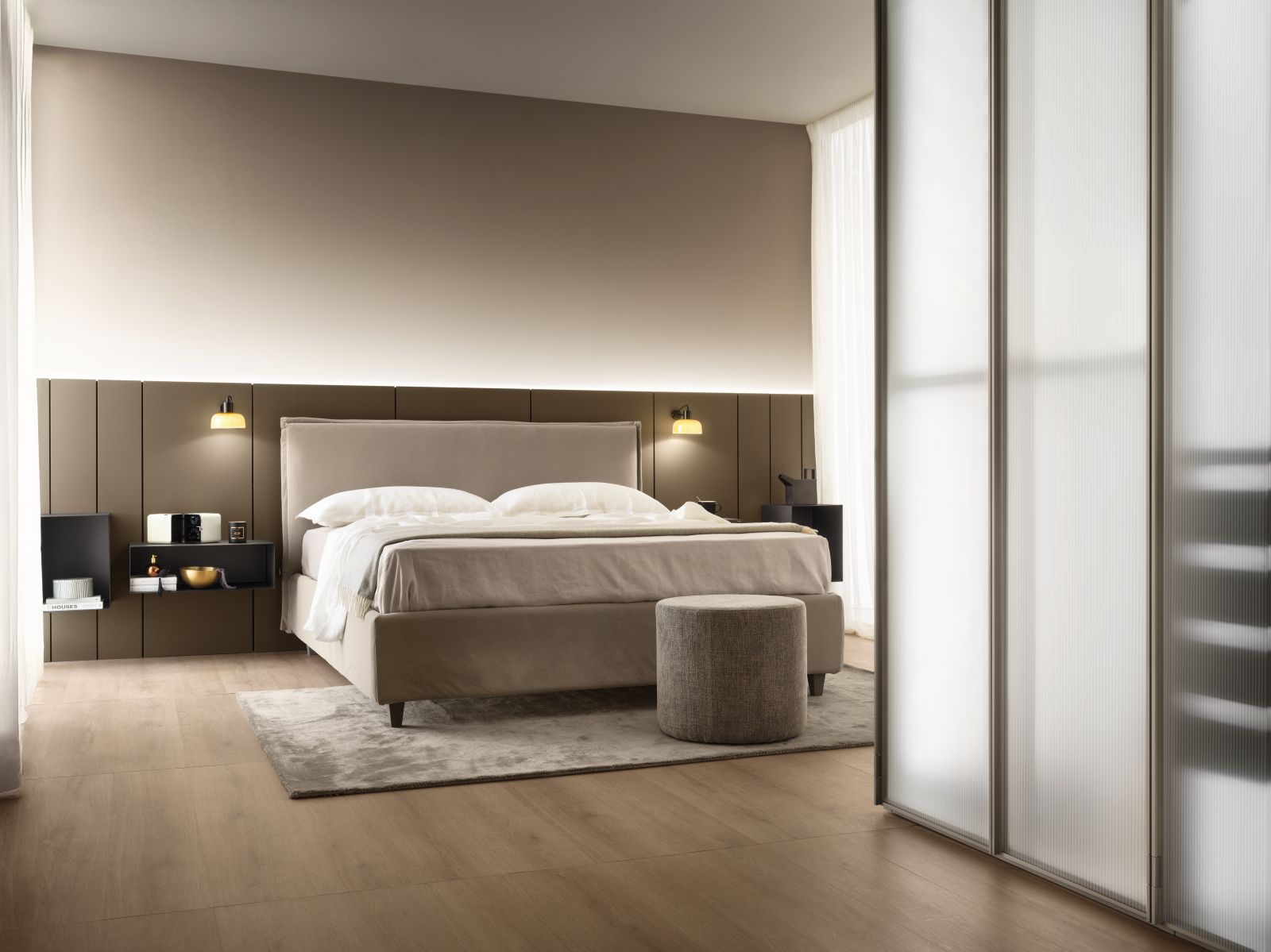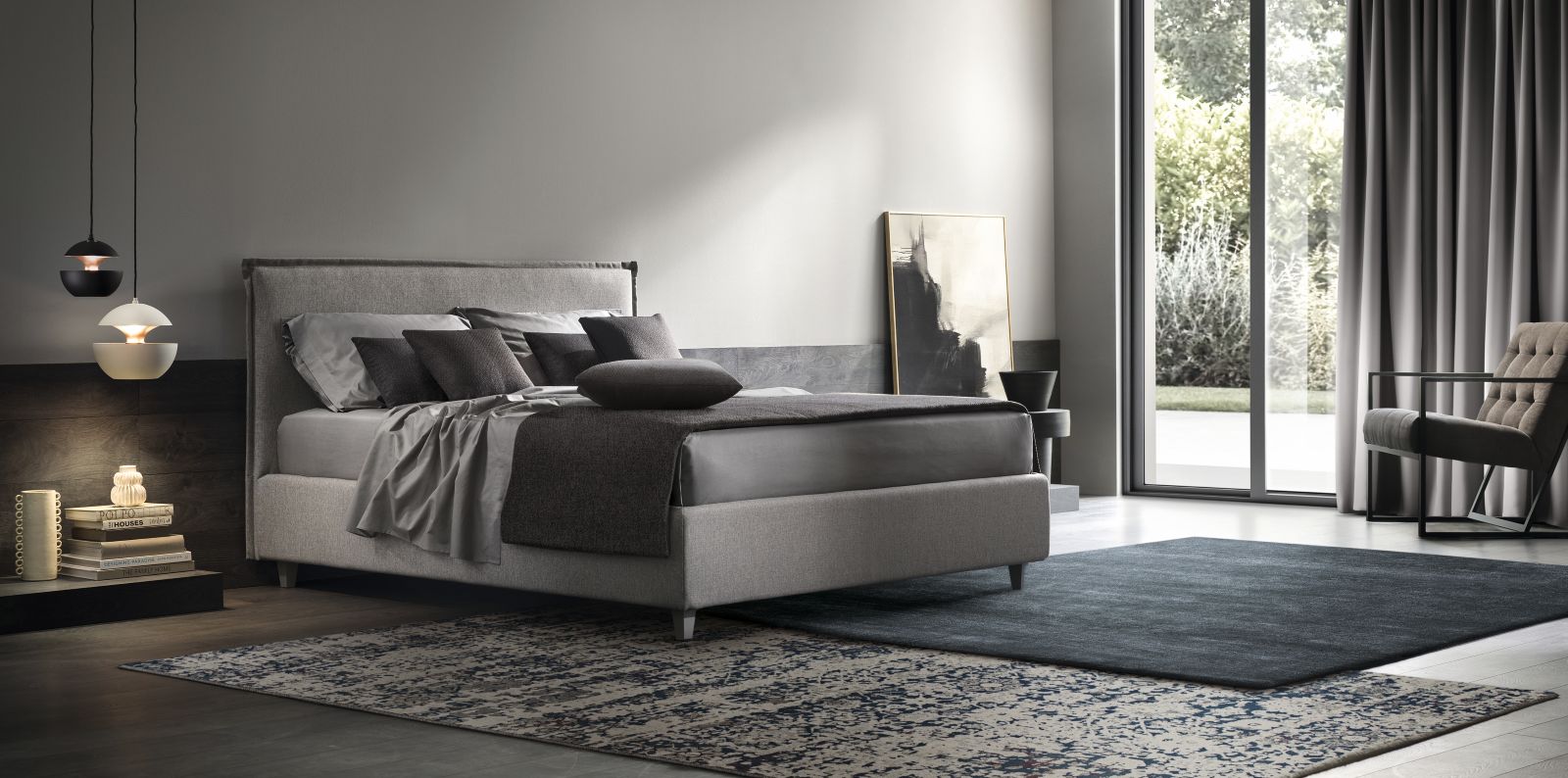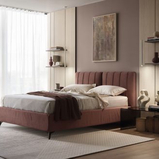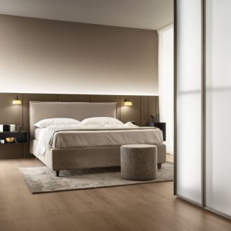 Sarin invece si caratterizza per il suo design contemporaneo ed essenziale. La morbida testata, valorizzata da un delicato bordo a volant, rende infatti il modello perfetto per camere dal mood giovane e rilassante. Anche in questo caso, la scelta dei rivestimenti è ampia: dai colori neutri alle texture melange.