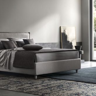 Entrambe le proposte sono disponibili per due misure di materasso (160×190 e 160×200 cm) e si può scegliere tra rete ortopedica fissa oppure sollevabile; mentre la combinazione con due tipi di piedini, Alpha in legno finitura alluminio satinato (H. 10 cm) o Delta in metallo finitura Moka (H. 13,5 cm), garantisce un’estetica curata e una facile pulizia del pavimento sottostante.