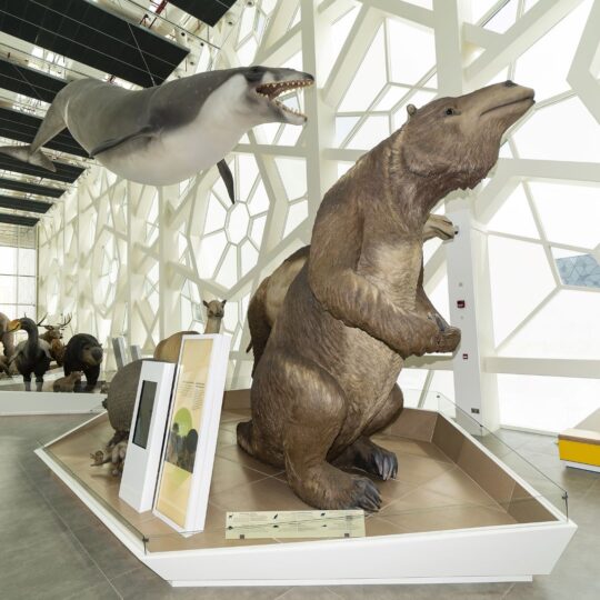 Inoltre, all’interno del Museo di storia naturale si trova la galleria “Our Earth”, nella quale sono esposti scheletri di dinosauri, rettili e mammiferi che popolavano la Terra milioni di anni fa: per la realizzazione dei supporti di questa galleria è stato scelto HI-MACS®, materiale di alta qualità composto da minerali naturali e acrilico.