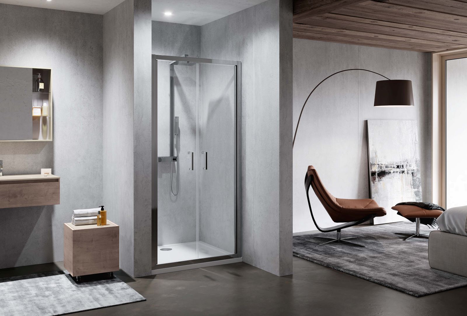 • Le ante reversibili, che permettono al box doccia di adattarsi e inserirsi con facilità in qualsiasi ambiente bagno per infinite composizioni di benessere  su misura.