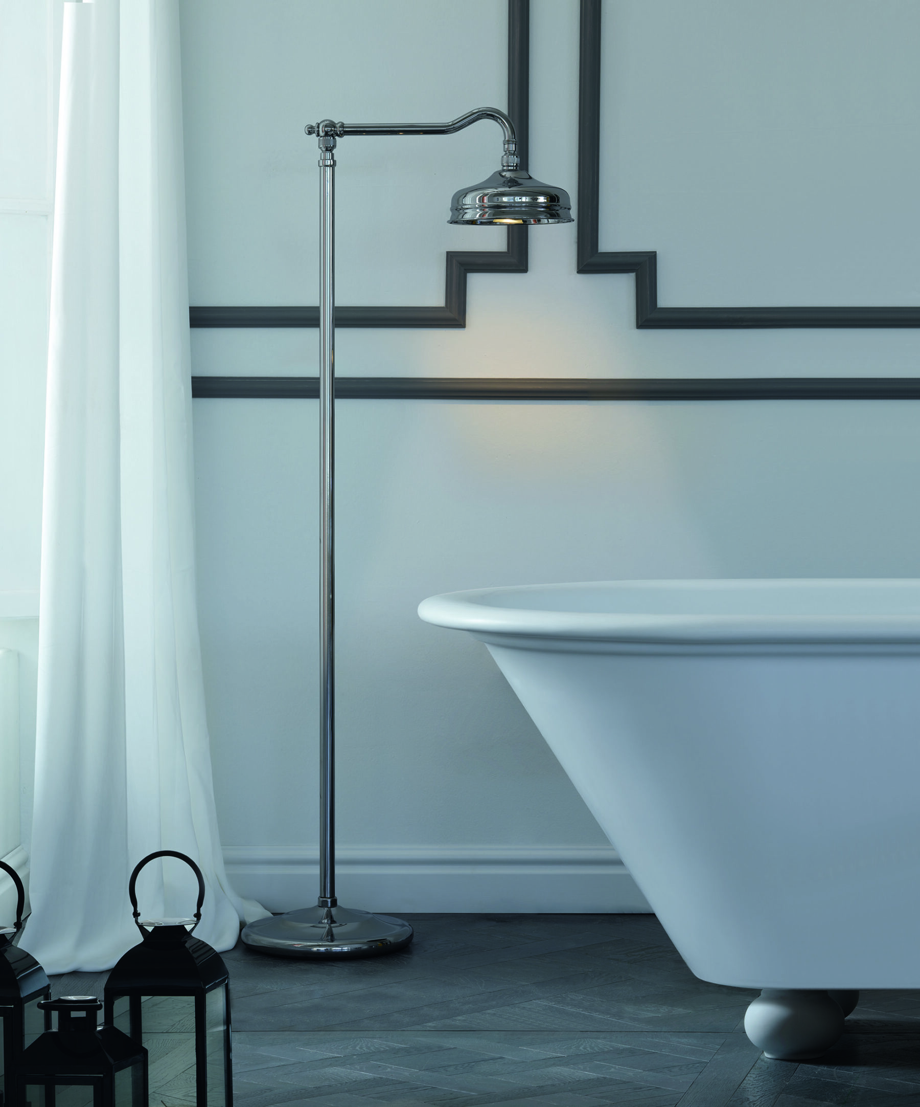 Imperia è una vasca freestanding, occupa poco spazio ed offre una grande comodità di utilizzo. Inedito quanto originale l’accostamento con un gruppo rubinetteria dallo stile industrial come Detroit.