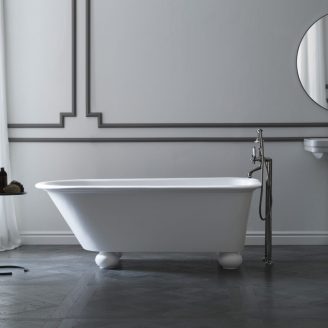 Flaminia è una vasca freestanding con piedini sagomati: con una sponda sagomata e l’altra liscia, è perfetta per un centro stanza, ma anche per essere accostata alla parete. Classica ed elegante, ha le proporzioni giuste per stare anche in un bagno non troppo spazioso.