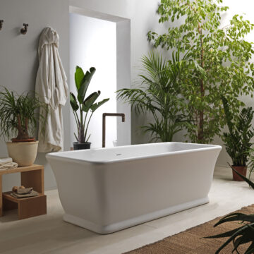Infine, Livia è lavorata con un motivo a scanalature molto delicato ed elegante, che rende questo arredo scultoreo e leggero allo stesso tempo: la purezza del bianco latte ne rappresenta la classicità dell’ispirazione ed è un omaggio ad uno stile che nella stanza da bagno non passa mai di moda. Ideale per il centro stanza, è predisposta per la rubinetteria a terra installata a bordo vasca sul lato lungo.