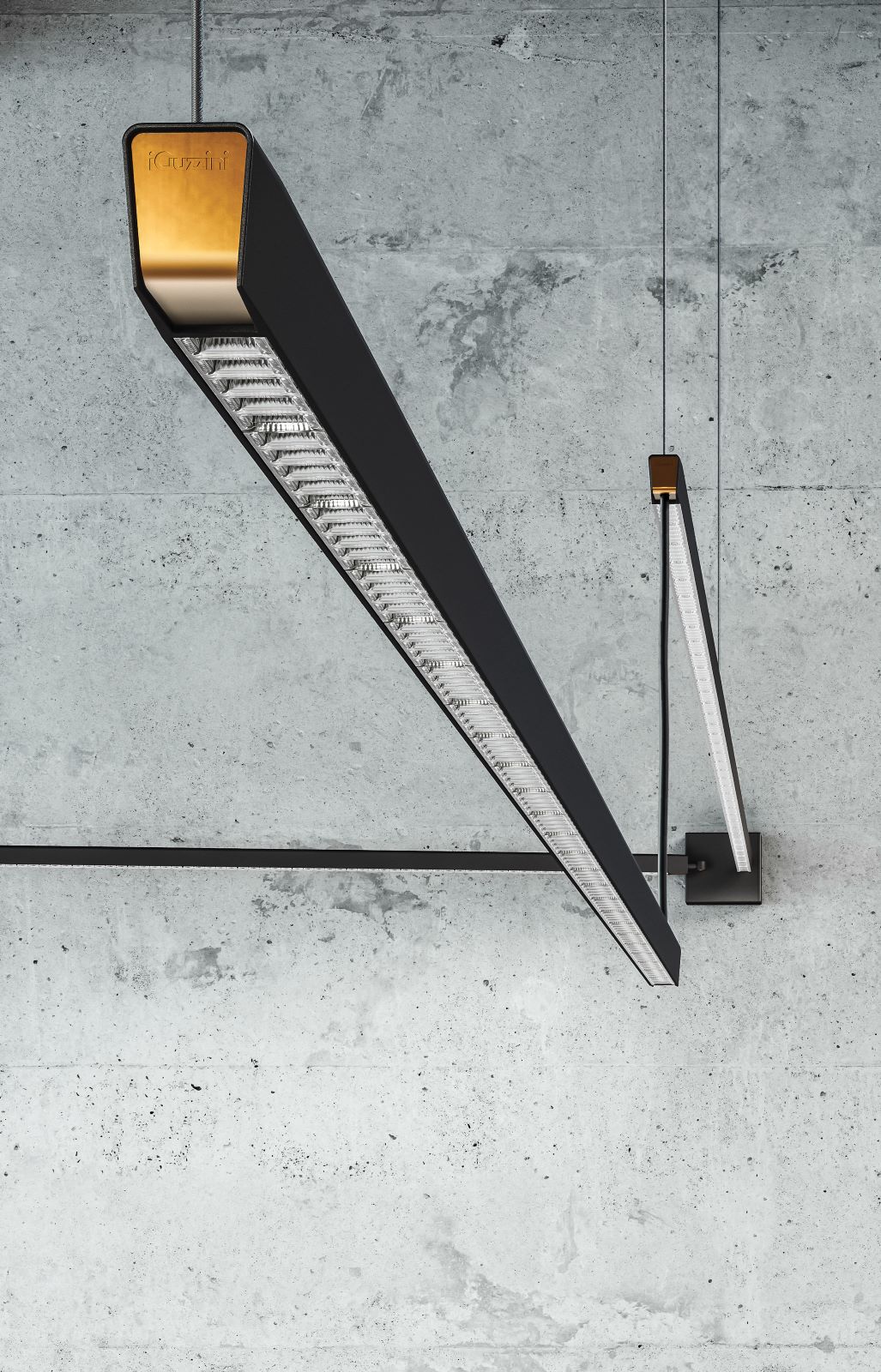 Il giunto in ottone, prezioso e sostenibile, sottolinea i passaggi formali e funzionali, è uno snodo brillante e dorato che rende leggibile il percorso dell’energia e i cambi di direzione delle linee luminose.