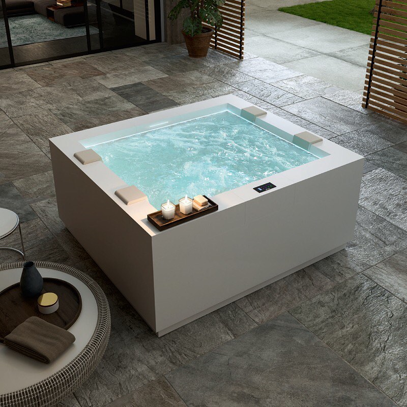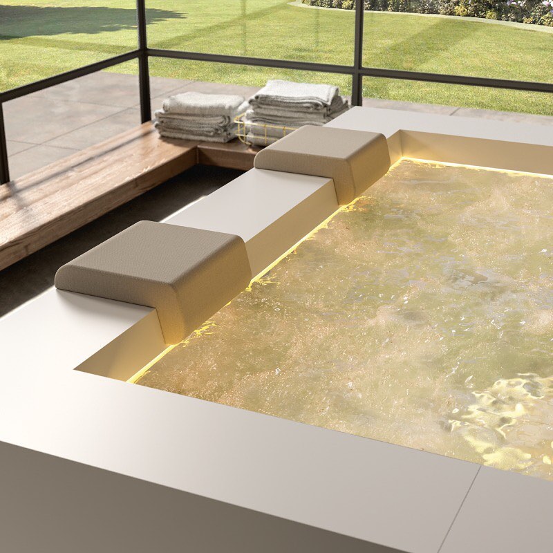 Modula Pool trascende così la semplice struttura per diventare un’esperienza sensoriale immersiva e profonda. Grazie all’integrazione di sistemi di cromoterapia LED, la minipiscina si trasforma nelle ore serali in una vera e propria scultura luminosa, capace di amplificare la dimensione emozionale dell’ambiente. In questo contesto, l’acqua smette di essere un semplice elemento di svago e si evolve in uno strumento di rigenerazione che dialoga con lo spazio in modo silenzioso e sofisticato, affermandosi come un elemento architettonico profondamente contemporaneo.