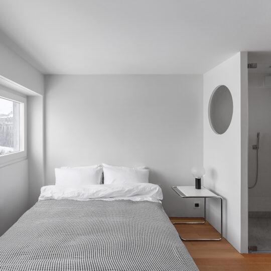 Il team progettuale ha poi optato per la lampada da tavolo Kuula di Uli Budde nella versione nera: la sua eleganza formale la rende perfetta come lampada da lettura abbinata al tavolino B 97 della camera da letto.