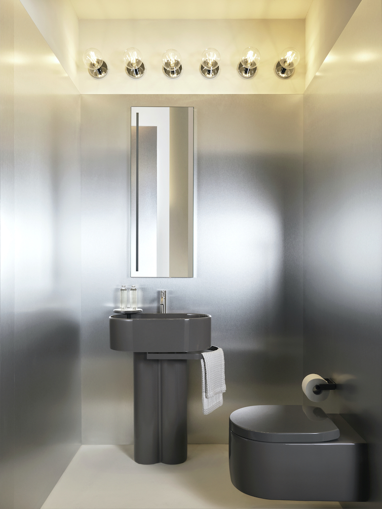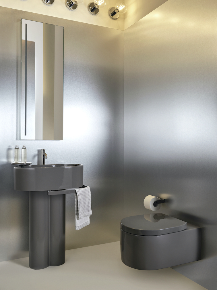 A completare la collezione c’è anche una coppia di sanitari, disponibile sia nella variante sospesa che in quella a terra. Entrambe le versioni sono disponibili nella selezione di nuance delle palette Terre e Acque di Cielo dedicata ai sanitari e nelle finiture Talpa e Fumo.