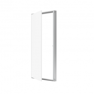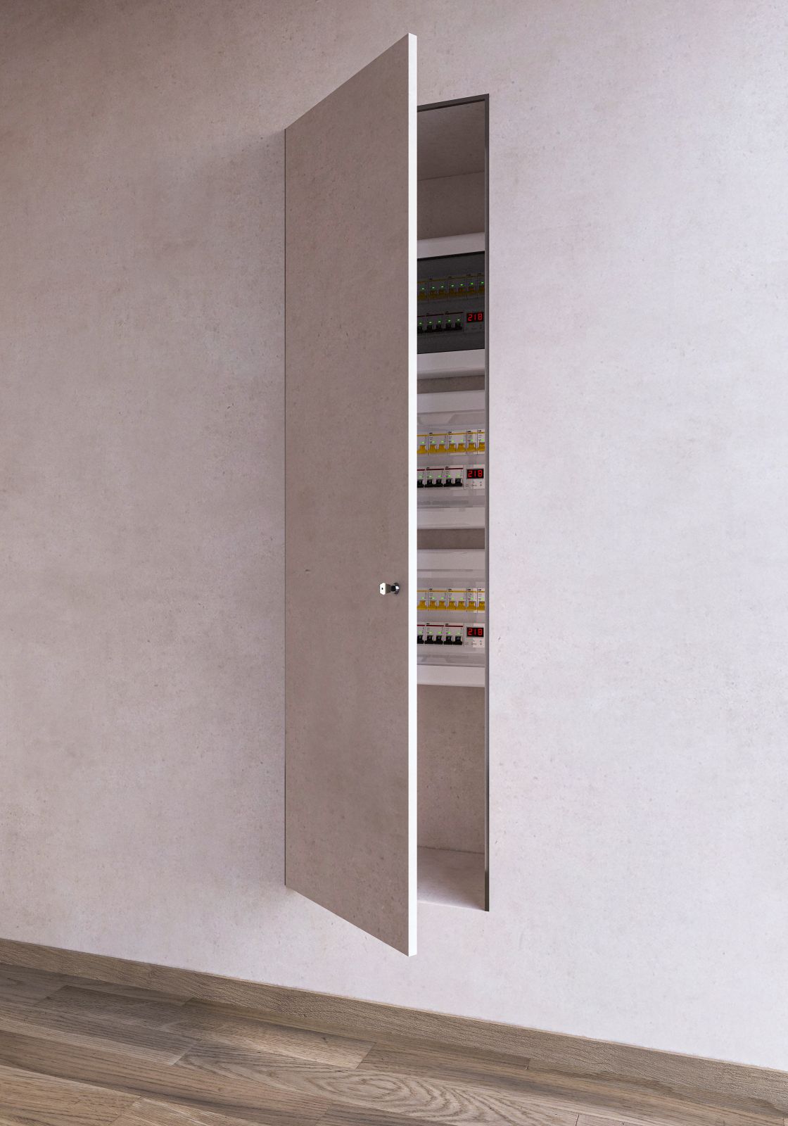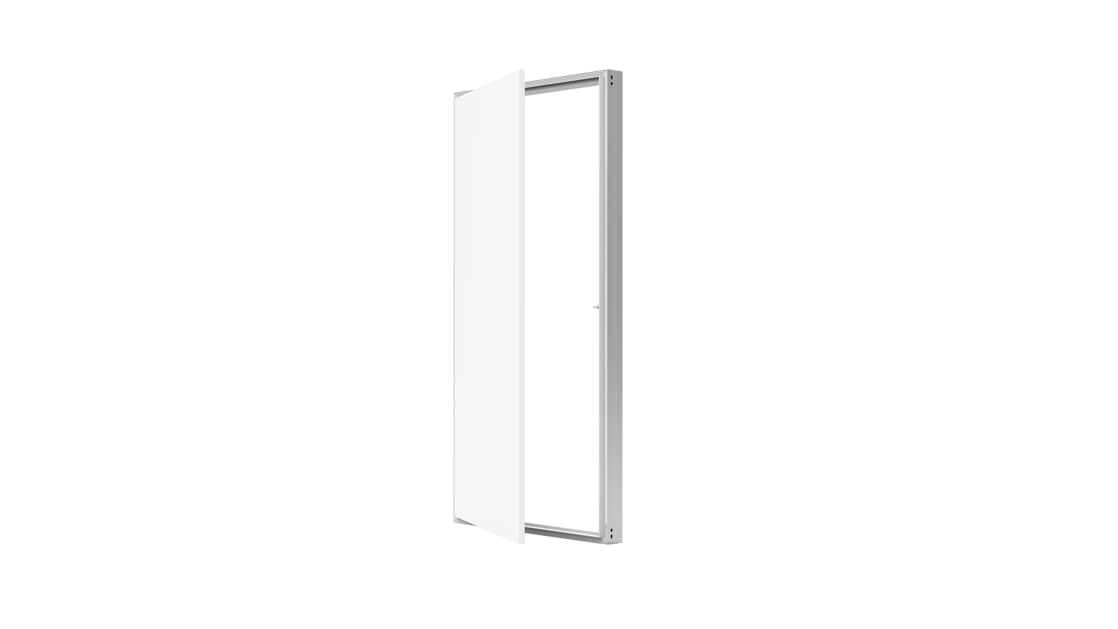 L’estetica è totalmente personalizzabile: i pannelli in truciolare nobilitato possono essere tinteggiati, rivestiti o trattati con texture, rendendo la chiusura mimetica o trasformandola in un segno grafico. Per le applicazioni esterne, l’utilizzo di pannelli in alluminio composito assicura resistenza e coerenza con l’involucro architettonico. Anche i dettagli funzionali, dall’apertura push-pull di serie alle diverse opzioni di maniglie e serrature a filo, sono pensati per mantenere un equilibrio perfetto tra tecnica e design.