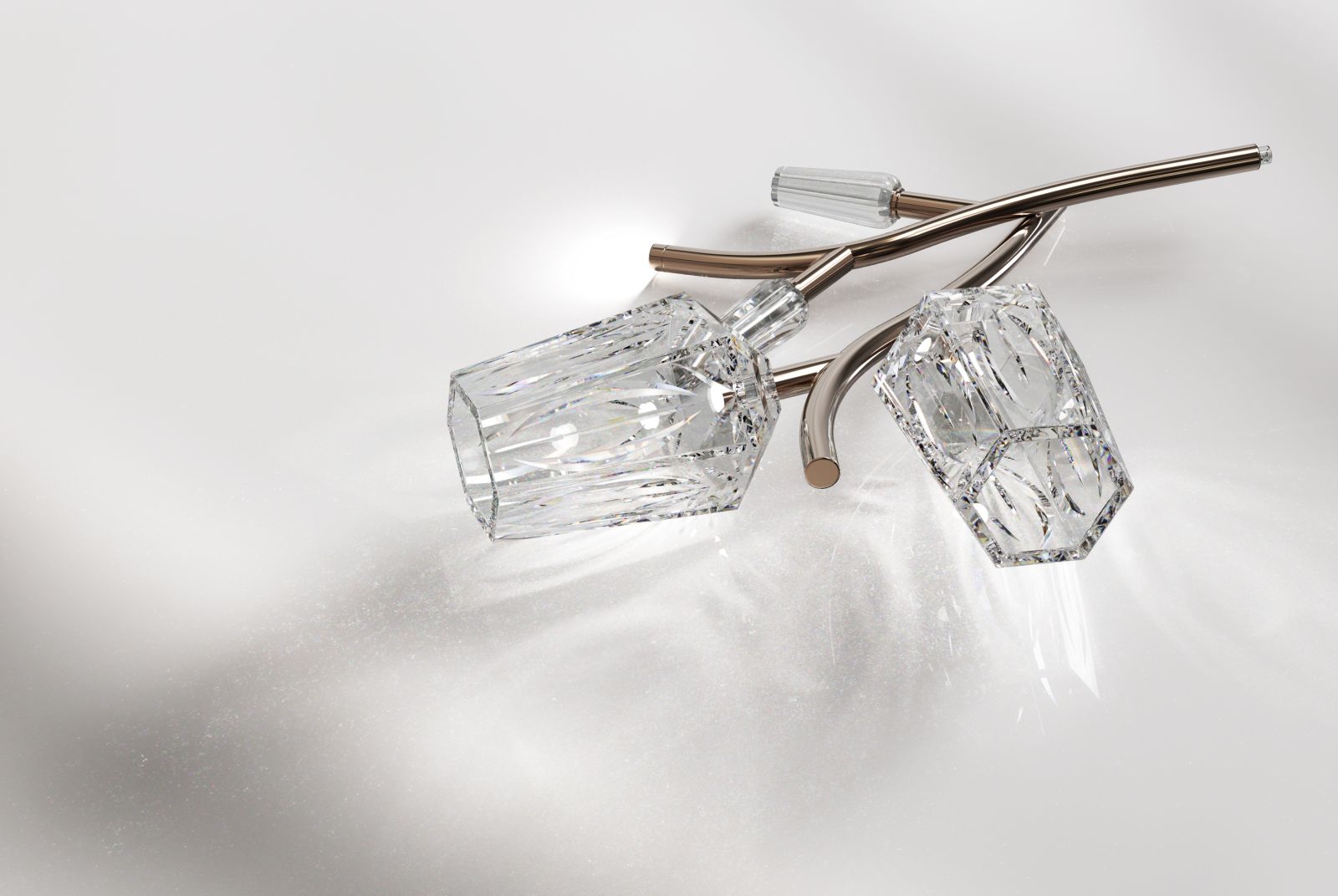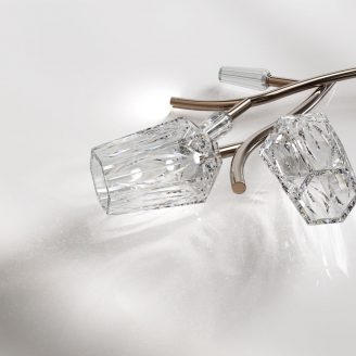 A livello di dettagli tecnici ed estetici, il disegno presenta il gambo del fiore realizzato in metallo, disponibile nelle finiture Oro nickel e Oro chiaro. I boccioli, invece, sono realizzati in cristallo intagliato e raffigurano in modo artistico le due distinte fasi della fioritura. Quando il fiore è raffigurato nella fase chiusa, è disponibile unicamente in cristallo trasparente. Nella fase sbocciata, il cristallo è disponibile in finitura iridescente, trasparente o trasparente con intaglio acidato.