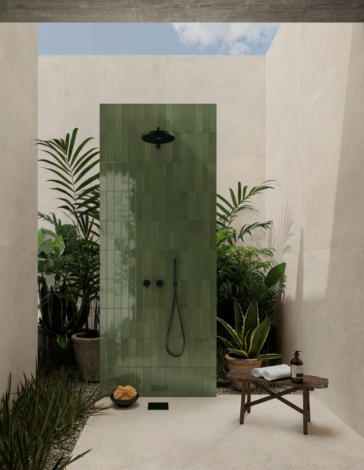 Il tratto distintivo di Mid risiede nella sua texture vivace e irregolare, frutto dell’utilizzo di una graniglia vetrosa che rende ogni pezzo un’opera unica e irripetibile. Lo smalto super lucido applicato sulla superficie genera ricercati avvallamenti e bruciature lungo i bordi, creando effetti cromatici profondi che richiamano la matericità delle ceramiche tradizionali. La palette colori è composta da sei tonalità calde e polverose – Lino, Sabbia, Ambra, Rubino, Turchese e Salvia – pensate per creare combinazioni cromatiche armoniose o per definire accenti di carattere all’interno del progetto architettonico.