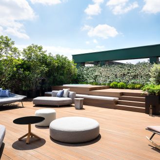 All’esterno, invece, sulla terrazza della suite, il benessere si rinnova grazie alla doccia freestanding OUT.SIDE, firmata da Davide Vercelli. Realizzata in acciaio inox e pensata per la vita all’aperto, questa proposta coniuga resistenza e personalizzazione: le sue maniglie, disponibili anche in marmo e finiture speciali, sottolineano ancora una volta l’attenzione di FIMA per i dettagli e la qualità dei materiali.
