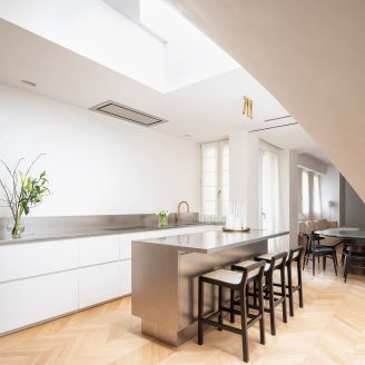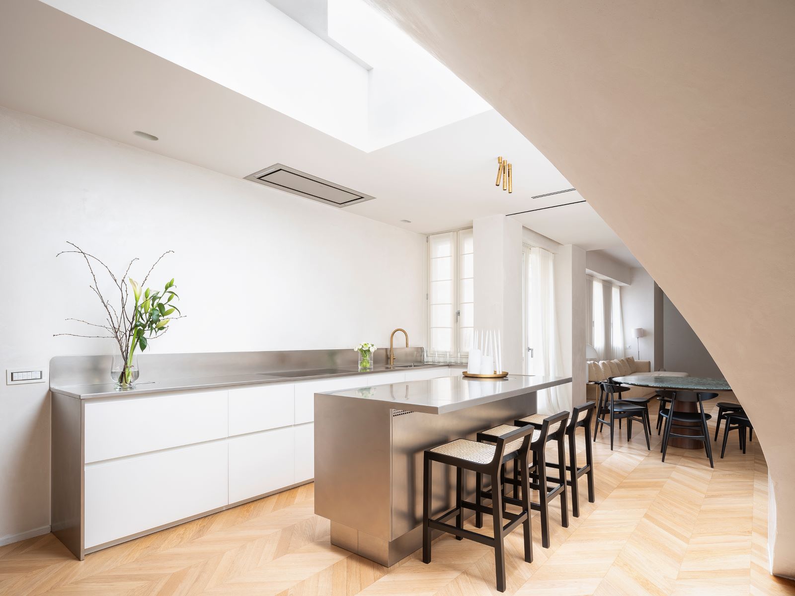 In un elegante appartamento appena ristrutturato all’interno di un palazzo costruito negli Anni Settanta nel quartiere di Porta Venezia a Milano, una giovane chef e la sua famiglia desideravano poter disporre di una cucina in grado di combinare la performance di un ambiente professionale con il design ricercato tipico dello spazio domestico.