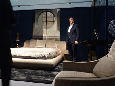 «Dopo il successo del Salone del Mobile di Milano, confermiamo la volontà di mescolare alcuni prodotti iconici con le nuove proposte 2018. Così il vanity Loren, la consolle Galliano, lo specchio Brion e l’ufficio della serie Lock si sposano perfettamente con novità come il letto Grand Soho, il divano Belmond e la Berger Embassy disegnate dall’architetto Massimo Iosa Ghini ed i preziosi tavolini in labradorite Giselle. Un connubio di idee e di linguaggi che prendono forma in un caleidoscopio firmato Smania.»