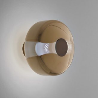 La struttura metallica di Solene viene proposta con finitura canna di fucile, mentre la “duplice anima” in vetro delle lampade viene proposta in due dimensioni: con un importante diametro di 50 cm e profondità 20 cm per lo chandelier e con proporzioni più ridotte per applique e lampada da tavolo, con diametro 33 e profondità 25 cm.