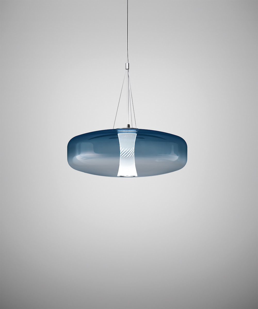 La forma a clessidra della lampada si ispira idealmente alla sagoma del campo magnetico del cuore umano. Così il vetro intagliato diventa il cuore di Solene che racchiude la sorgente LED e dal quale diffonde la luce dando vita a un’atmosfera intima e suggestiva.