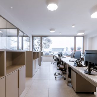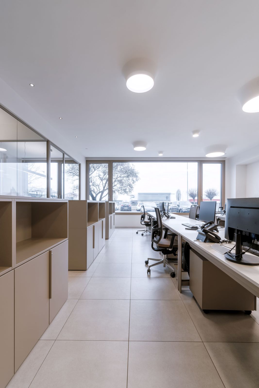 Le ripartizioni interne, sia in cartongesso che in vetro, scandiscono così nuovi ambienti di lavoro improntati a ricavare spazi individuali come gli uffici direzionali, la sala riunioni per meeting, l’area operativa e la sala espositiva per i modelli dei serramenti.