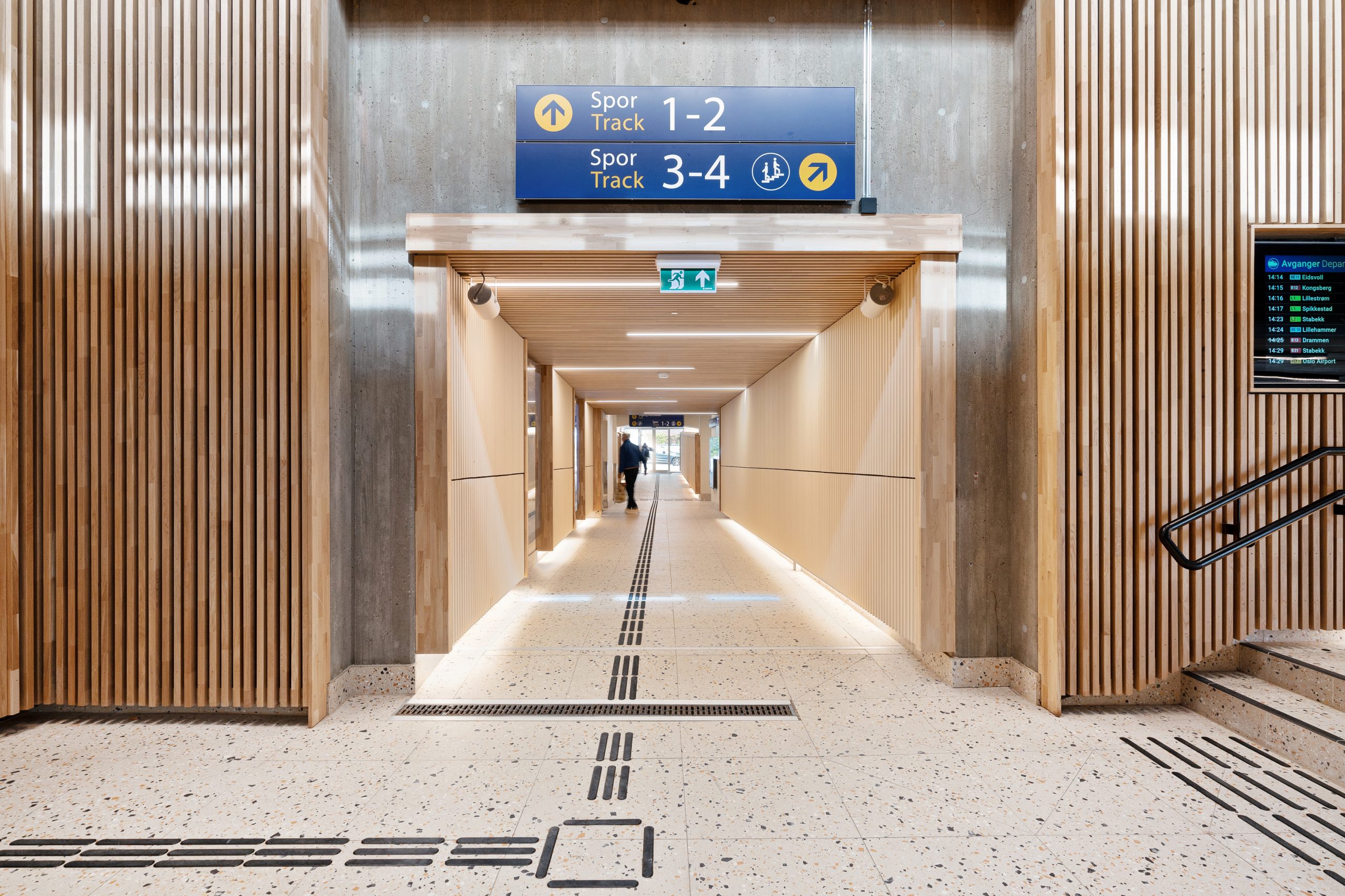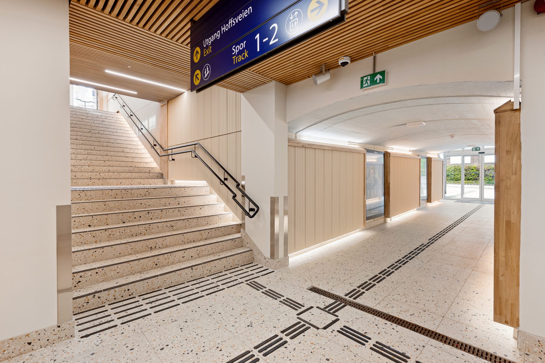 Lo storico snodo della capitale norvegese, la cui attività risale al lontano 1872, è attualmente il secondo scalo più trafficato del Paese e rappresenta un crocevia vitale per migliaia di persone ogni giorno. Prima dell’intervento, tuttavia, la lunga storia della struttura e l’intenso utilizzo avevano lasciato segni evidenti di usura, con aree caratterizzate da un’atmosfera poco invitante, spazi angusti e condizioni climatiche interne non ottimali che compromettevano la percezione di sicurezza, specialmente nelle ore serali. La riqualificazione, portata a termine tra il 2023 e il 2024 dallo studio Plus Arkitektur su commissione di Bane Nor Property, si è posta l’obiettivo di trasformare radicalmente questo scenario.